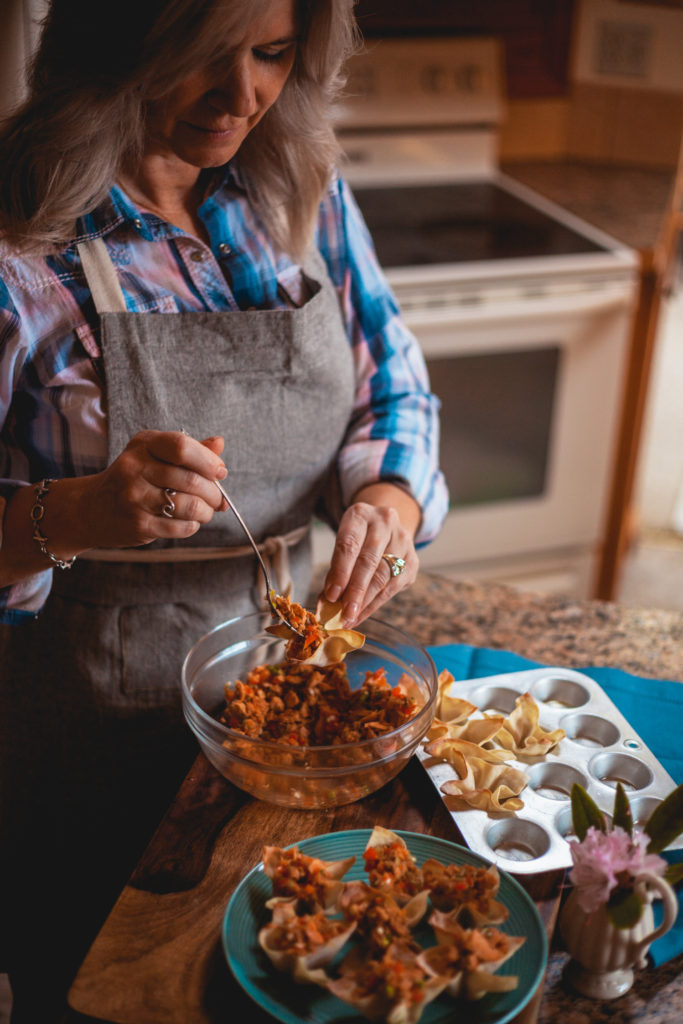 Salmon Salad Wonton Cups with Ginger-Lime Dressing