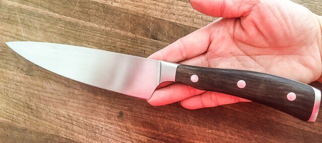 You want to feel as though it is okay to place your weight on your knife without worrying that it will bend or snap in half. For that reason, I suggesting finding a knife made from a strong metal. High-carbon metals are generally quite strong (stronger than stainless steel) but each type of metal differs slightly. When looking for a strong knife, I suggest actually handling the knife. Pick it up. See if it feels heavy or light. Of course, you will not want your knife to be so heavy that your wrist grows weak and tired after cutting a single onion. Still, heaviness signifies strength as well, so try to find one with a decent weight. Try to bend the blade. If the blade bends, even the slightest bit, put the knife back. Don’t even bother wasting your time on it – it will disappoint you.Get a Grip