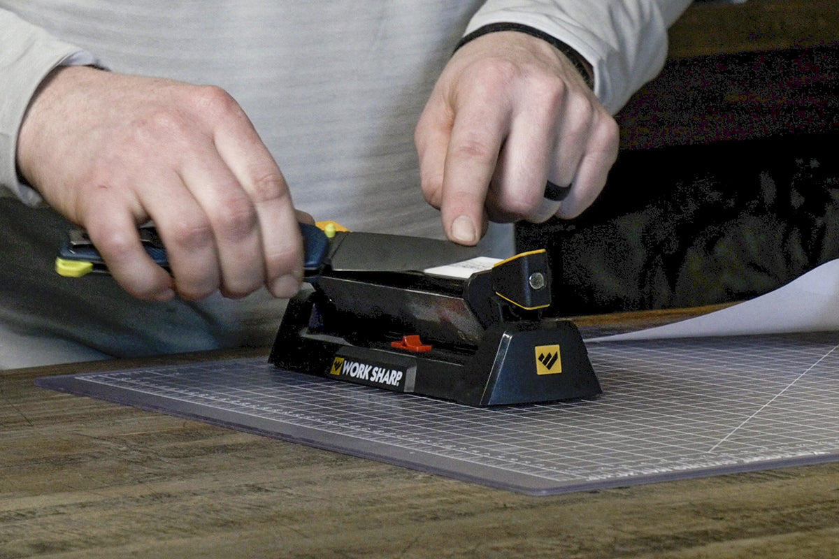Grab a magazine and cut out a page. Hold the page securely in your non-dominant hand. At a 45-degree angle (down and away from you), draw your knife through the paper and perform a cut test. Does it slice smooth? If not, give it a few more strokes on the ceramic, check the thumbnail test, and try it again.
