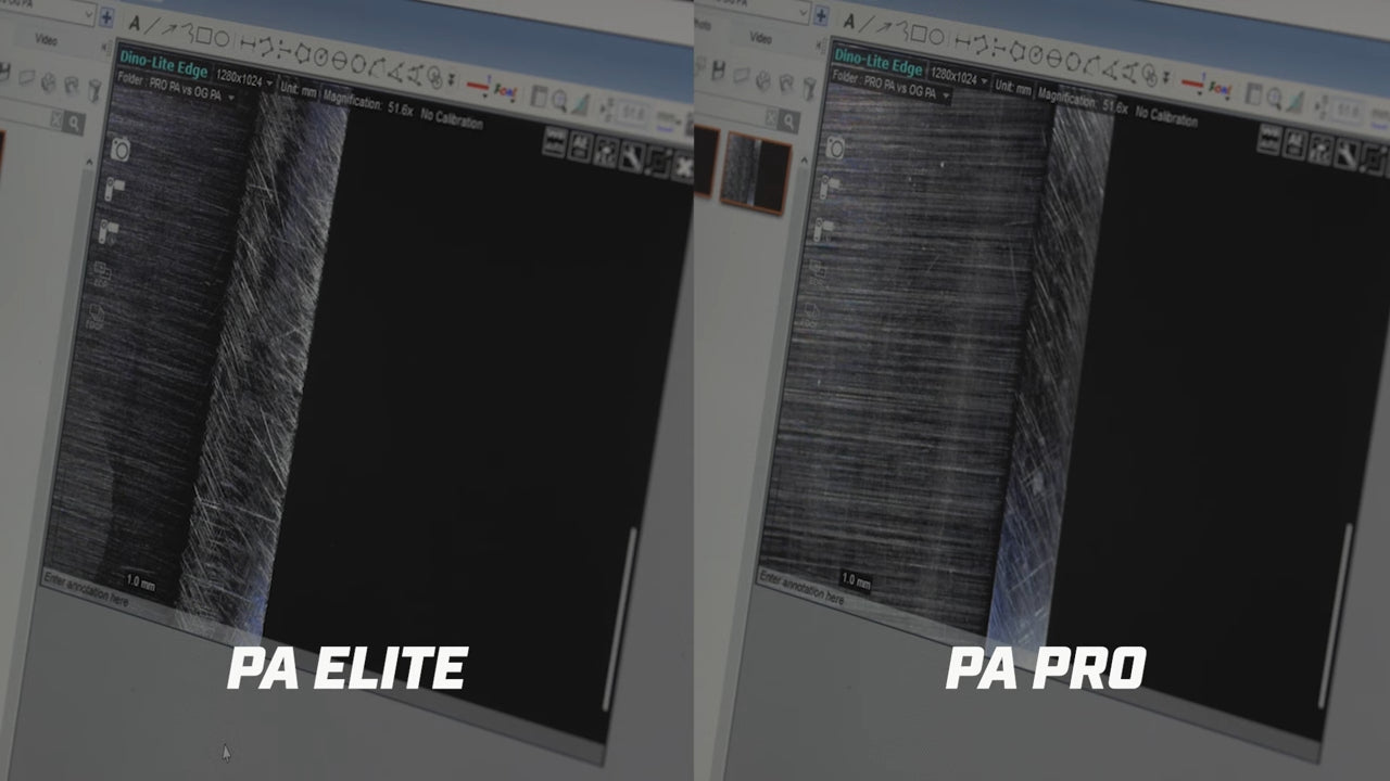 Moving on to the Pro PA, a noticeable difference in edge finish becomes apparent. The edge is cleaner, with a smoother and more defined transition from the shoulder to the edge. Josh employed a back-and-forth sweeping motion during the initial stages and switched to a straight sweeping motion as he progressed to higher grits. The Pro PA's rigidity delivers an impressive final result.