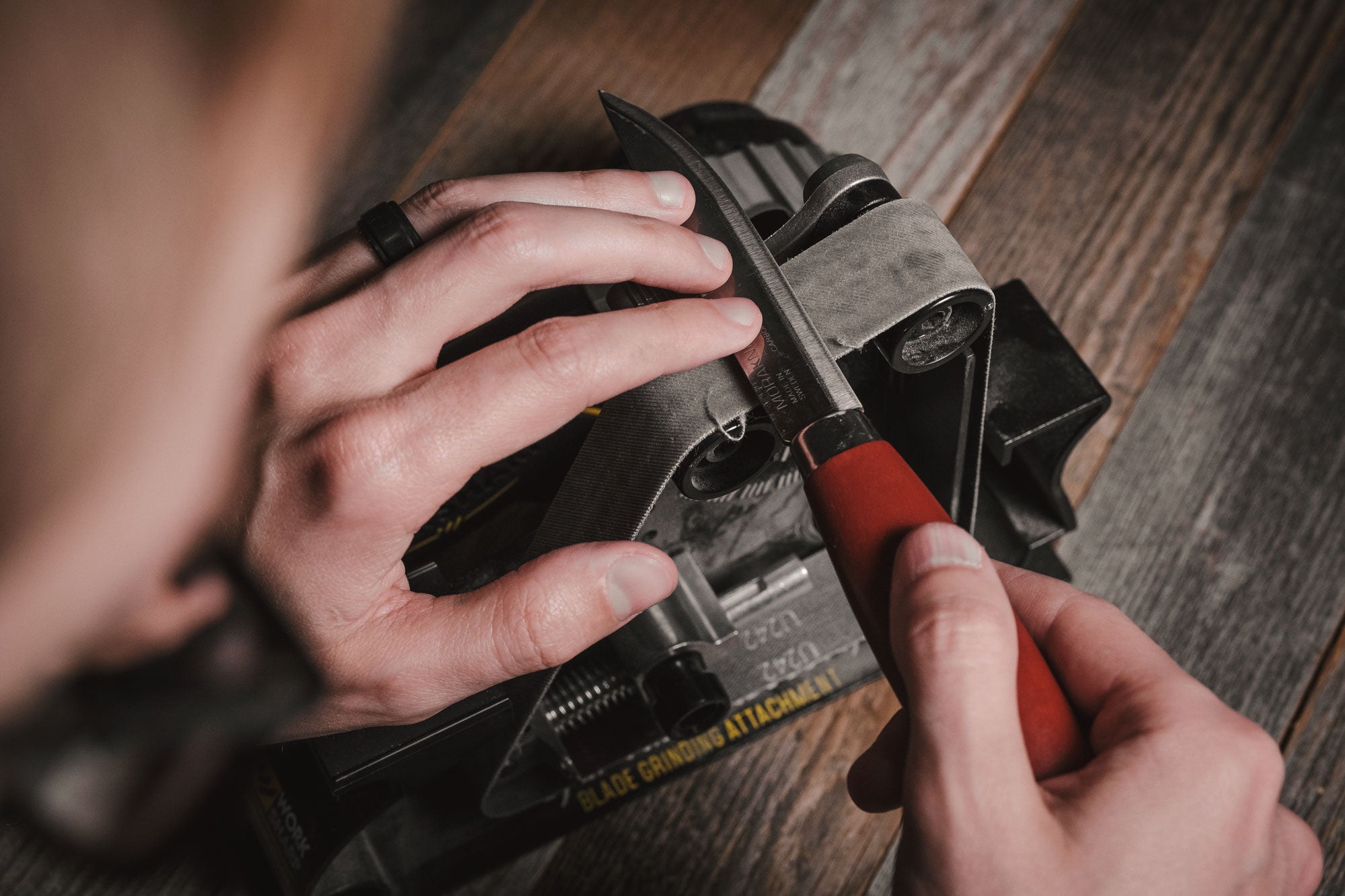 The Blade Grinding Attachment, designed to extend knife and tool sharpening capabilities is included in the review with high praise for the versatility the attachment provides when customizing and edge.