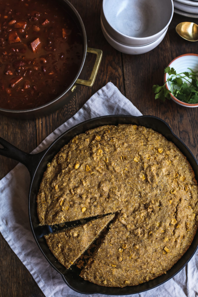 In colder weather, there’s nothing more comforting than a good hearty bowl of chili and a thick slice of cornbread. Taking a healthier approach to this standard combo, this four bean vegan chili uses sprouted legumes to increase digestibility and a warming mix of savory and sweet spices. It’s the perfect base recipe for a variety of grounding root veggies, swapping out the sweet potato for pumpkin or butternut squash as it calls to you.