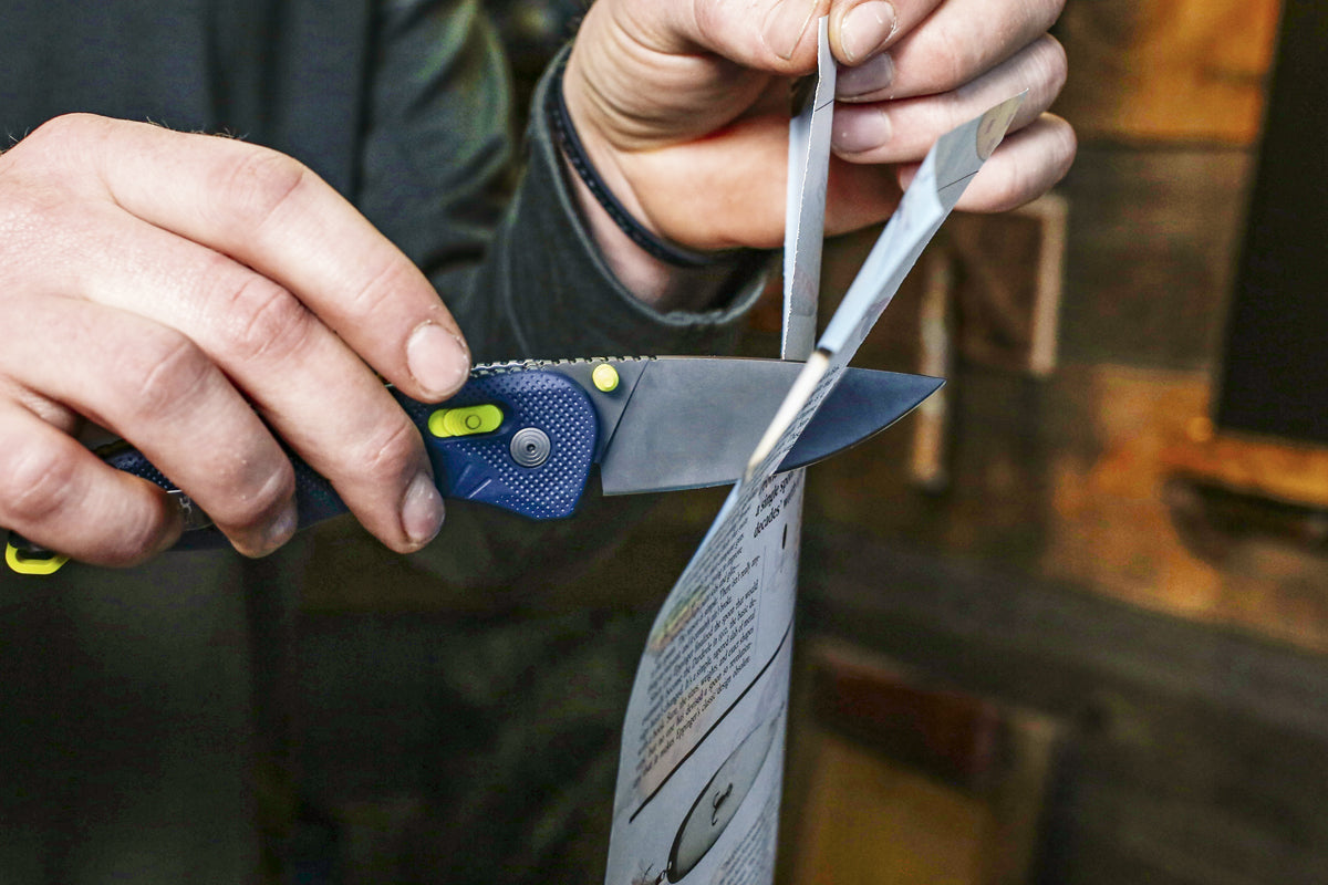 The process of stropping is similar to using a hone or stone; you set the blade at the angle it was sharpened against the strop and pull. That’s right, pull.